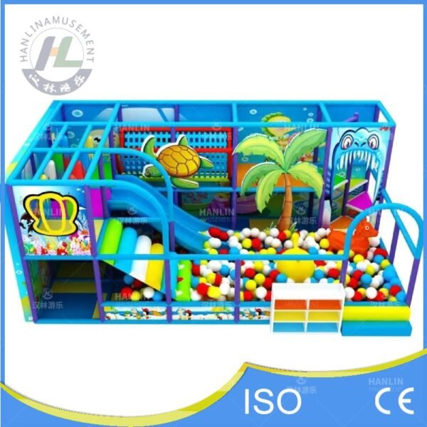 Create a captivating underwater world with the Hanlin Deep Sea Shark Theme Small Indoor Playground. Utilizing a rich palette of deep blues and cyans, this design captures the mystery of the ocean floor. It is specifically optimized for compact commercial spaces (20 – 50 sqm), delivering a high-impact visual experience without requiring a large footprint.