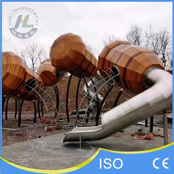 Harmonize your playground with the surrounding landscape using the Hanlin Pinecone Theme Playground. Designed to mimic natural seed pods or pinecones, this custom equipment transforms any park into a magical forest. It is an ideal choice for nature-themed resorts, arboretums, and outdoor education centers looking for equipment that complements, rather than clashes with, the trees.